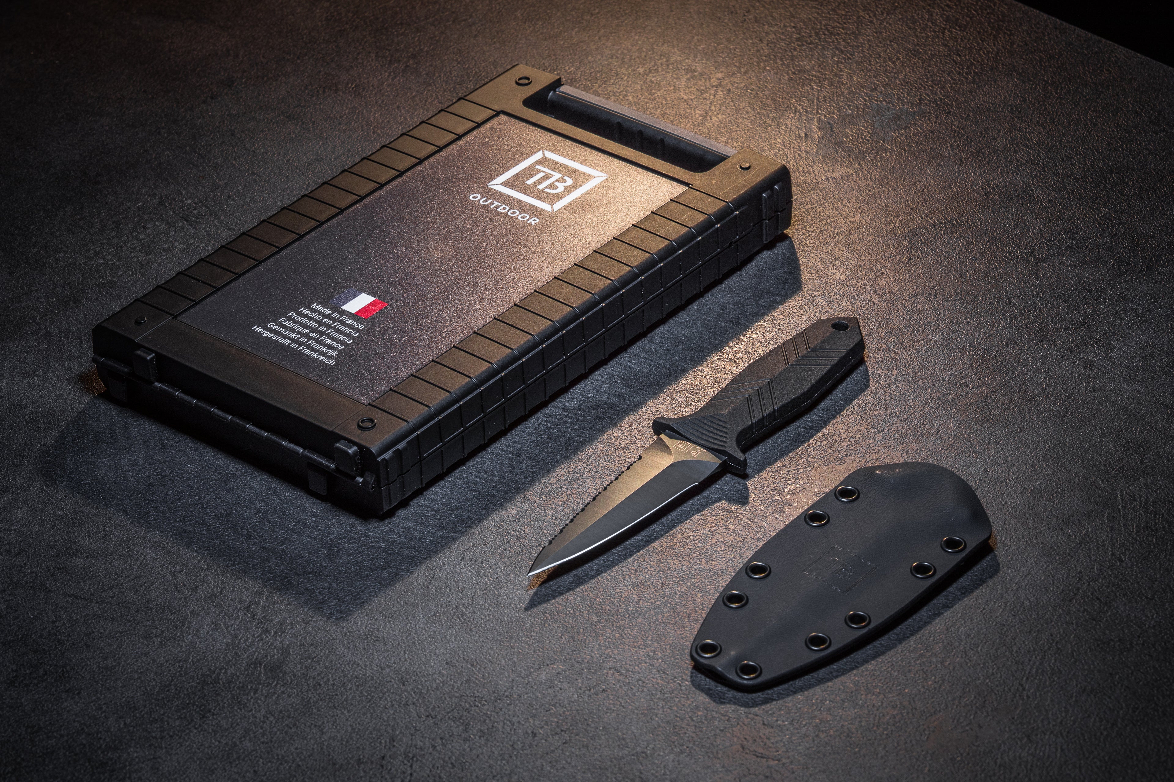 Protecteur® is a backup knife allowing multifunctional use. Its reduced size allows it to be worn in multiple configurations: arm, boot, belt, etc.