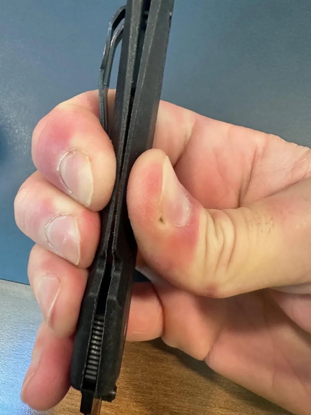 L'ouverture à une main n'est pas un gadget - c'est une nécessité fonctionnelle pour un véritable EDC. Combien de situations vous laissent une seule main disponible ? Vous tenez un carton, vous transportez un objet, vous vous appuyez quelque part...